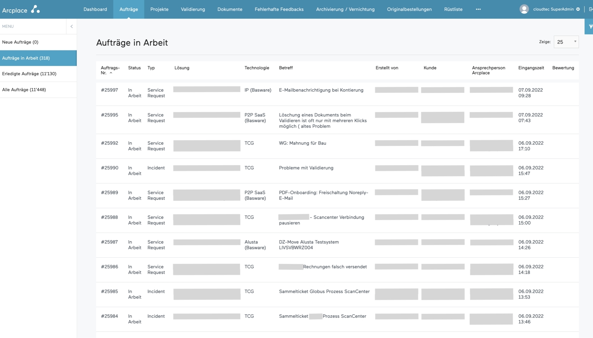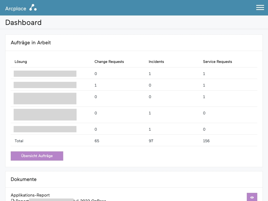 Der Arcplace-Kunde kann in diesem Modul allfällige Fehler (Incidents) in strukturierter Weise melden. Die gemeldeten Fehler werden automatisch in das ERP-System übertragen und dort von Arcplace verarbeitet. Allfällige Status-Änderungen zum gemeldeten Fehler werden zurück in das Kundenportal synchronisiert und sind dort für den Kunden einsehbar, so dass dieser jederzeit über den aktuellen Stand informiert ist. Zusätzlich zu den gemeldeten Fehler kann der Kunde den aktuellen Stand von allfälligen Änderungswünschen (Change Requests) im Kundenportal überprüfen.