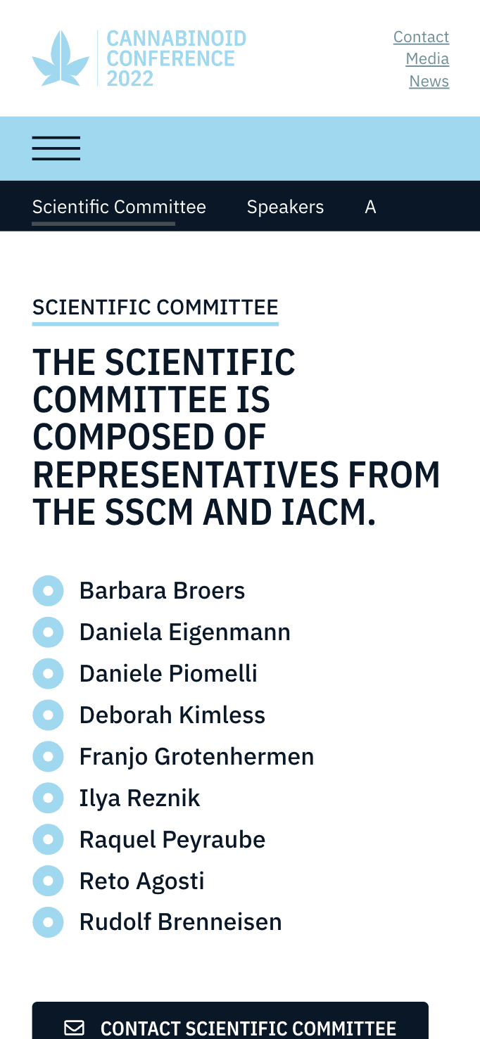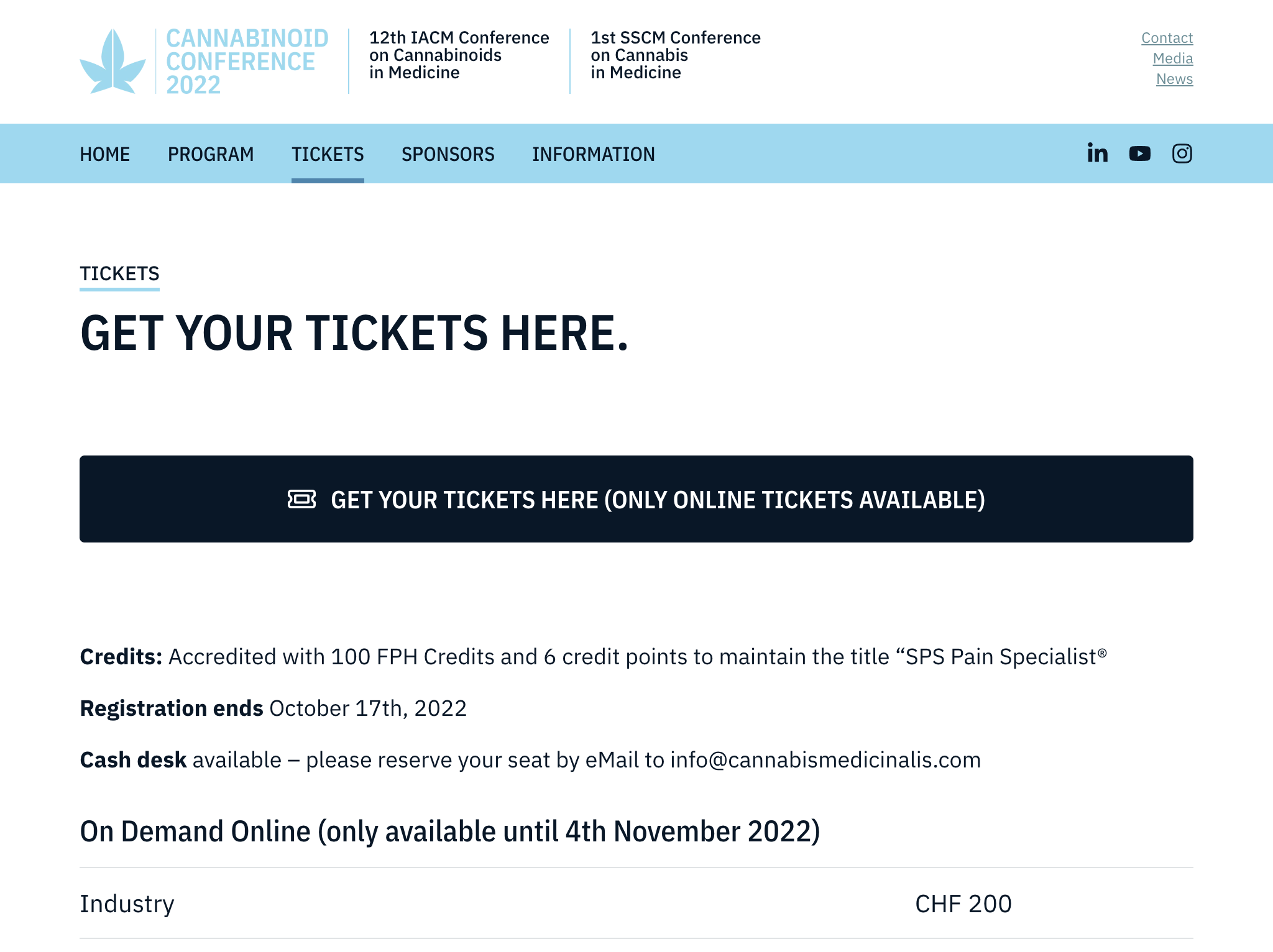 Für die Cannabinoid Konferenz im Oktober in Basel wurde eine informative und benutzerfreundliche Website erstellt. Die Einbindung von Whova ermöglicht das Darstellen von Speakers, dem Programm und sogar eines Ticketing-Systems, über welches die Teilnehmer Tickets kaufen können.