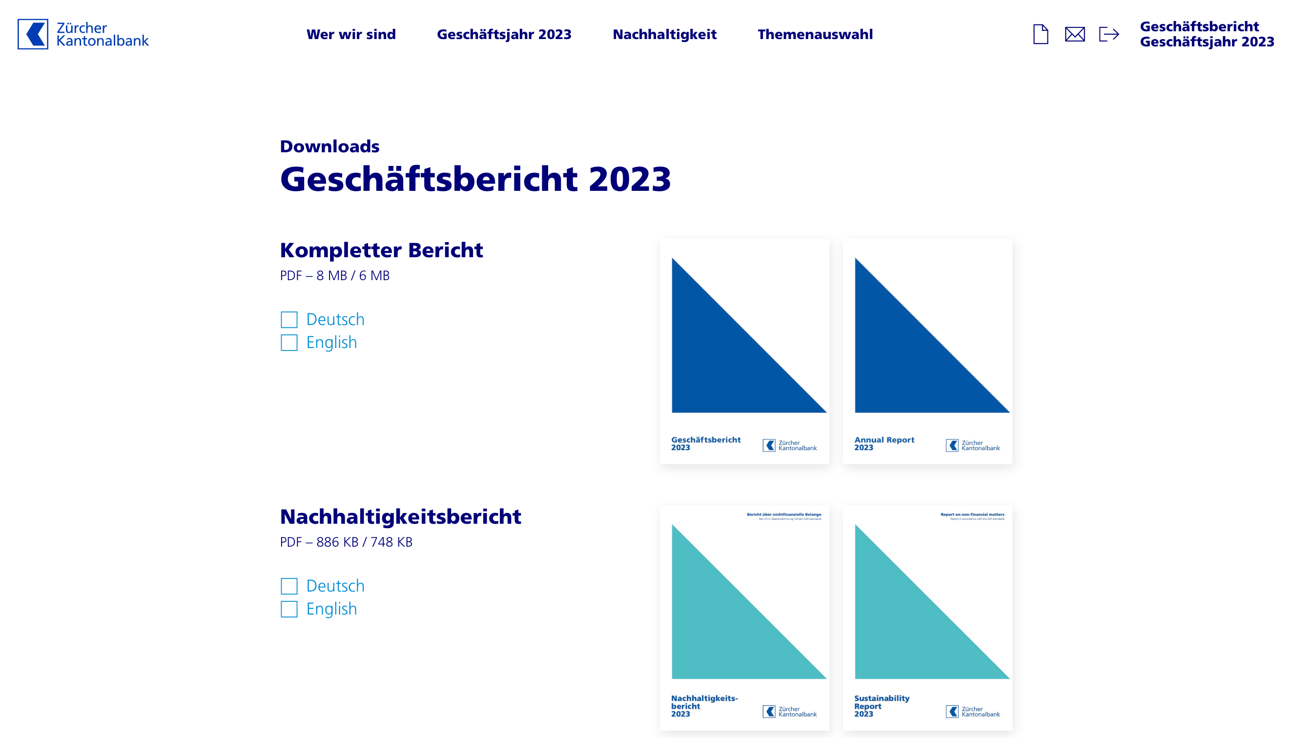 Der Geschäftsbericht der ZKB ist ein weiteres Projekt, für welches wir das Design gestalten konnten.