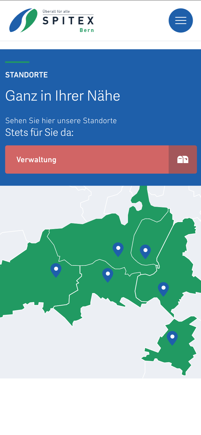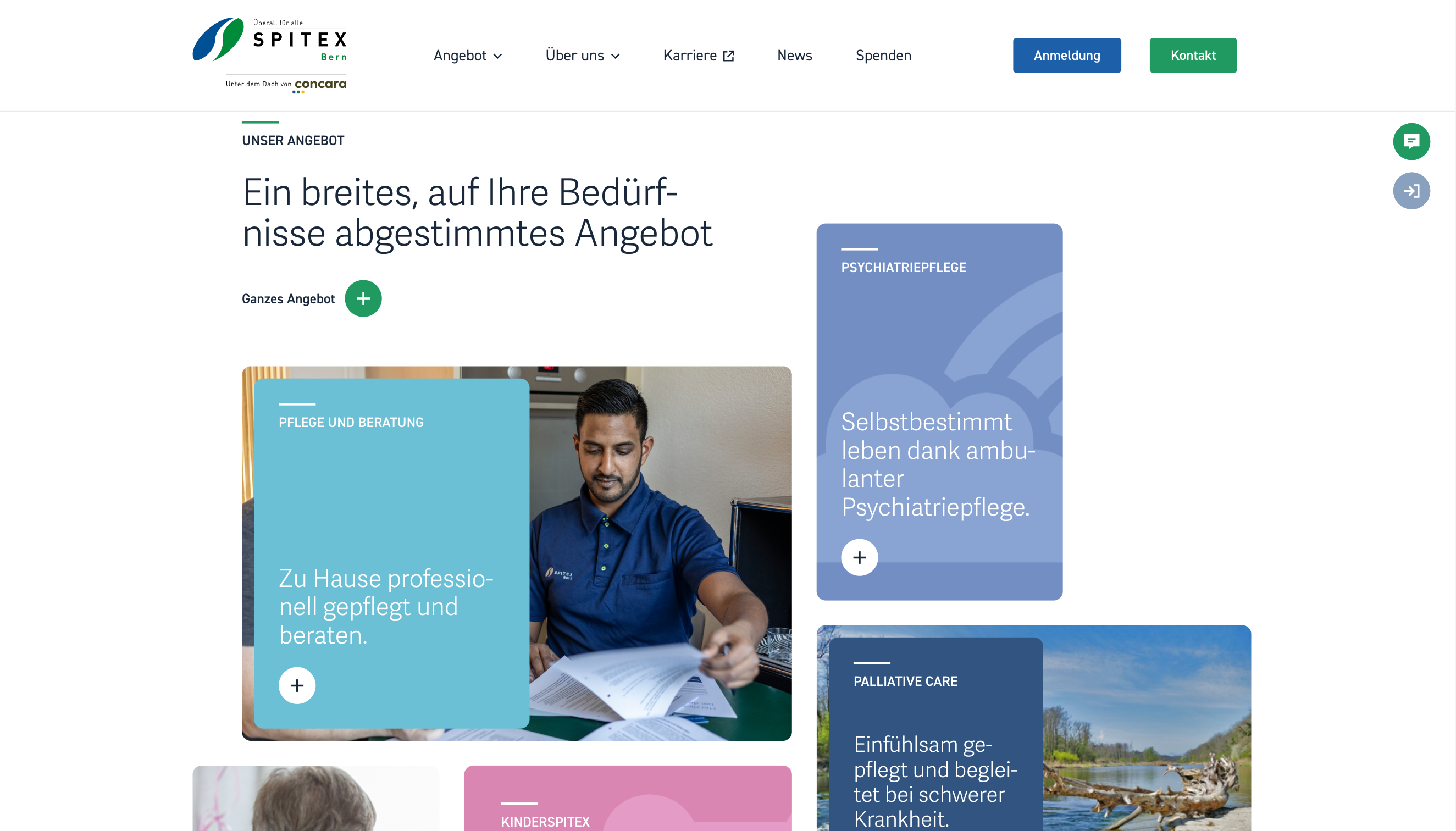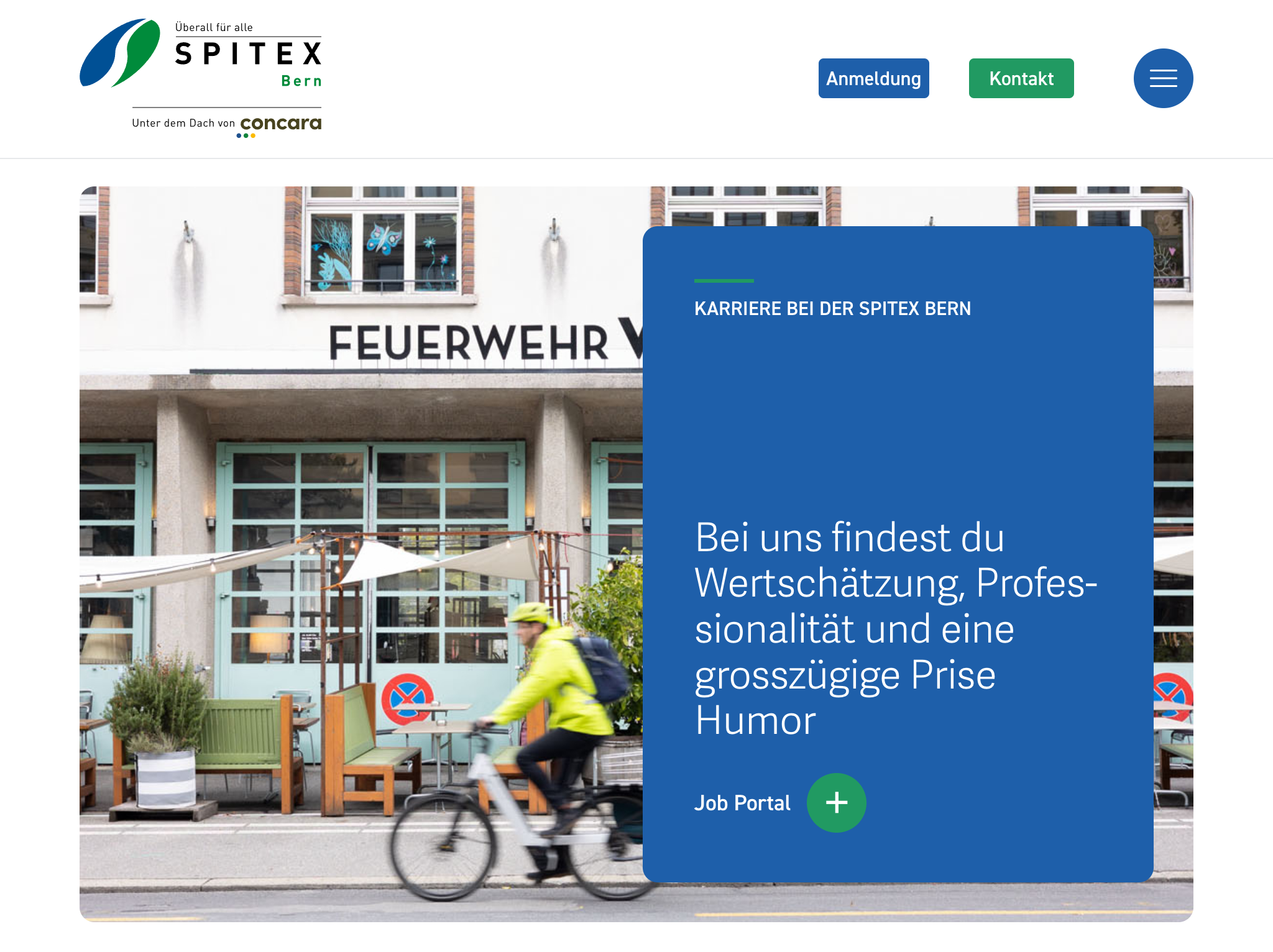 Im Auftrag der Spitex Bern durften wir eine neue Website (spitex-bern.ch) mit komplett überarbeitetem Konzept und Design und dazu noch eine Karriere-Landingpage (jobs.spitex-bern.ch) mit abweichendem Design umsetzen.