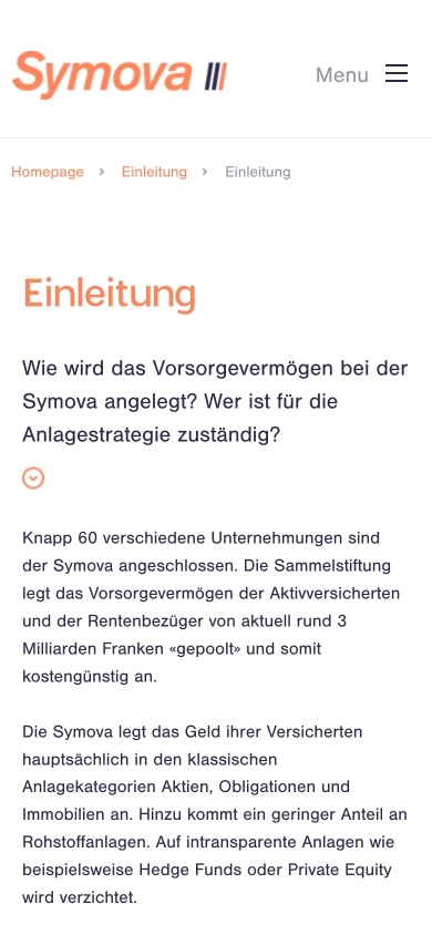 Die Sammelstiftung Symova ist eine unabhängige Pensionskasse für Mittel- und Kleinunternehmen. Gegründet aus Betrieben des öffentlichen Verkehrs und der Tourismusbranche, steht die Symova Sammelstiftung heute allen in der Schweiz ansässigen Unternehmungen zur Verfügung. Die Stiftung setzt sich stark für die nachhaltige Finanzierung der beruflichen Vorsorge ein.